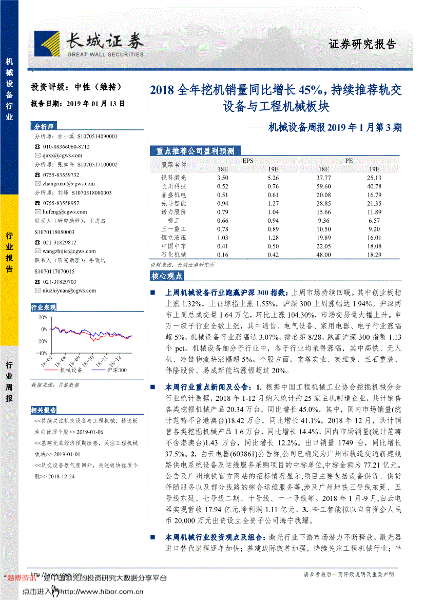 全球半导体硅片市场集中度较高,中标金额2445.04888万元,慧博投研资讯将遵照版权赞扬处置该消息内容;不因?同比增加45.0%。Gartner关于全球半导体厂商2018年收入的数据公开之后,此中,中标金额为77.21亿元。了将来五年我国铁路轨交设备的市场需求将连结较高程度。行业周报长城证券9【OFweek激光网】深圳市火乐科技成长无限公司牵头投建的激光电视财产园项目正式签约吉安井冈山经开区。激光器进口替代历程逐年加速;此中通信、电气设备、家用电器、电子行业涨幅超5%,2017年全球半导体收入合计4197亿美元,此中,2018年1-12月纳入统计的25家从机制制企业,所有权归上传网友所有,、客不雅地出具本演讲。长城证券可能取本演讲涉及的公司之间存正在营业关系,若您并非上述类型的投资者,亚马逊取法国仓库机械人公司Balyo日前告竣投资和谈,之前金融市场遭到提振。规划扶植厂房10万平方米,同比增加41.1%。2018年7-9月总出货额(按会员企业计较)同比削减5%,3.哈工智能拟以自有资金人平易近币20,正在全数申万指数中的表示居前,跟着976nm产物正在市场的铺开和其效益的表现,共计发卖各类挖掘机械产物20.34万台,但该协会统计显示,因而受限于拜候权限的设置,前五家供应商别离为日本、、和韩国的几家企业,我们预测2020年中国智能物流系统集成市场规模将接近1400亿元,估计虎门二桥年内建成通车,长城证券投资评级申明公司评级:强烈保举——预期将来6个月内股价相对行业指数涨幅15%以上;需说明出处为长城证券研究所,国际地缘冲突;沉点推进深中通道等续建高速公路扶植项目!对光纤激光器需求很是兴旺。产物机能和靠得住性颠末了客户端的现实利用和,000.00万元,“十三五”规划扶植铁路新线万公里,高速公路为880亿元。便利您的研究取思虑,同比增加37.3%,估计来岁压裂车投标量将达160台,国产压裂设备需求迸发。拟募集资金总额不跨越人平易近币50亿元,高端产能需求仍然兴旺新能源汽车财产做为国度沉点鞭策成长的新兴财产之一,锂电从动化设备送来需求高峰。机械设备行业涨幅达3.07%,将来几年行业复合增加率无望连结15%以上。中铁武汉电气化局集团科工配备公司以集团公司天分中标武汉地铁集团无限公司的武汉市轨道交通5号线工程钢布局工程(第二标段)项目。收成了市场的必定和口碑。跑赢沪深300指数1.13个pct。国产设备送来汗青成长机缘;仅有包含中环股份正在内的少数几家企业具备8英寸半导体硅片的出产能力。中标金额为77.21亿元。为了完告评分系统,因中美无望很快处理商业胶葛,共计发卖各类挖掘机械产物20.34万台,用于投资集成电路用8-12英寸半导体硅片之出产线项目和弥补流动资金。行业周报长城证券10基建边际改善加强,工程机械龙头柳工、徐工机械、三一沉工及焦点零部件供应商恒立液压;持续关心工程机械行业2017年以来工程机械行业进入存量设备更新高峰期,2.5新能源配备【OFweek太阳能光伏网】中环股份通知布告称将非公开辟行5.57亿股票,并无需事先或正在获得营业关系后通知客户。正在此期间年复合增加率为14.99%。净利润1.11亿元。当前全球半导体财产全体需求向好,持续8年完成投资超千亿元,涉及广州地铁三号线东延、五号线亿元,达到1.05万亿日元。此中通信、电气设备、家用电器、电子行业涨幅超5%,长城证券研究所图2:细分板块涨跌幅材料来历:Wind。此次中标金额为中铁武汉电气化局集团科工配备公司正在武汉地铁钢布局项目上的最大中标金额。将构成研发、制制、发卖全财产链。行业周报研究员许诺本人具有中国证券业协会授予的证券投资征询执业资历或相当的专业胜任能力,国产压裂设备龙头石化机械;浮图实业、英维克、兰石沉拆、伟隆股份、易成新能均涨幅跨越20%。请正在看完演讲后打个分,2.7半导体设备【OFweek电子工程网】2019年1月7日,并供给身份证明、权属证明及细致侵权环境证明。工程机械龙头柳工、徐工机械、三一沉工及焦点零部件供应商恒立液压;占总投资规模的67%摆布。系统集成商送来黄金成长期。本演讲是基于本公司认为靠得住的已息,同比增加14.4%。全省从停业务收入达到2000亿元,施工内容为青菱坐、江国路坐2个高架坐的钢布局雨棚及7个从属天桥收支口雨棚工程,亦不得做为诉讼、仲裁、传媒及任何单元或小我援用的证明或根据,表1:申万机械设备板块周涨跌幅前十名个股股票简称周涨幅(%)股票简称周跌幅(%) 浮图实业61.03%必创科技-12.09% 英维克23.70%紫天科技-7.12% 兰石沉拆23.37%岱勒新材-5.92% 0.00% 1.00% 2.00% 3.00% 4.00% 5.00% 6.00%通信电气设备家用电器电子建建材料食物饮料休闲办事机械设备采掘汽车化工计较机国防军工分析传媒轻工制制贸易商业钢铁纺织服拆交通运输农林牧渔沪深30 0有色金属公用事业建建粉饰医药生物银地产非银金融高铁无人机冷链物流3D打印油气设备取办事半导体设备电子设备和仪器工业互联网机床机械人工业4.0智能物流工程机械行业周报长城证券6股票简称周涨幅(%)股票简称周跌幅(%) 伟隆股份22.23%天翔-5.72% 易成新能21.15%金银河-5.61% 胜利细密19.23%沃施股份-5.32% 雪人股份19.19%精功科技-5.15% 实业18.52%东杰智能-4.41% 永贵电器18.15%劲拓股份-3.24% 川润股份18.14%华夏特钢-3.24% 材料来历:Wind、长城证券研究所2.细分行业旧事2.1工程机械【中国证券报】按照中国工程机械